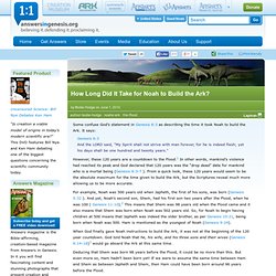 The bible does not tell us precisely how long it took noah to build the ark. Unfortunately we cannot know these things one could argue that noah began building the ark while his children were either unborn or mere toddlers, thus extending the timespan to nearly 100 years. The bible does not say how long it took noah to build the ark, but it seems that he spent several decades building it. And was 480 years old when god asked him to build a ship to save all the animals. When god finally gave noah instructions to build the ark, it was not at the beginning of the 120 year countdown.